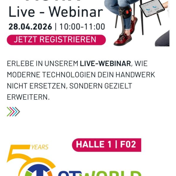 Komm zu einem unserer Ausstellerworkshops auf der OTWorld 2026 in Leipzig und entdecke das nächste Level der individuellen Orthesenversorgung!